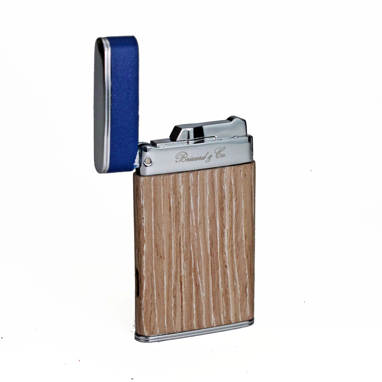 Bleached Oak Wood and Blue Leather with Chrome Accents