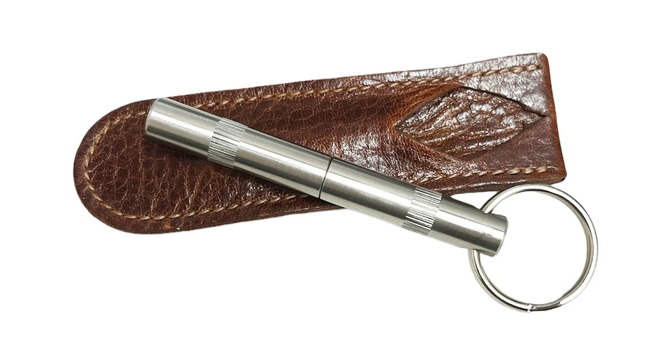 Stainless steel spear punch cutter, comes with a antique saddle leather pouch