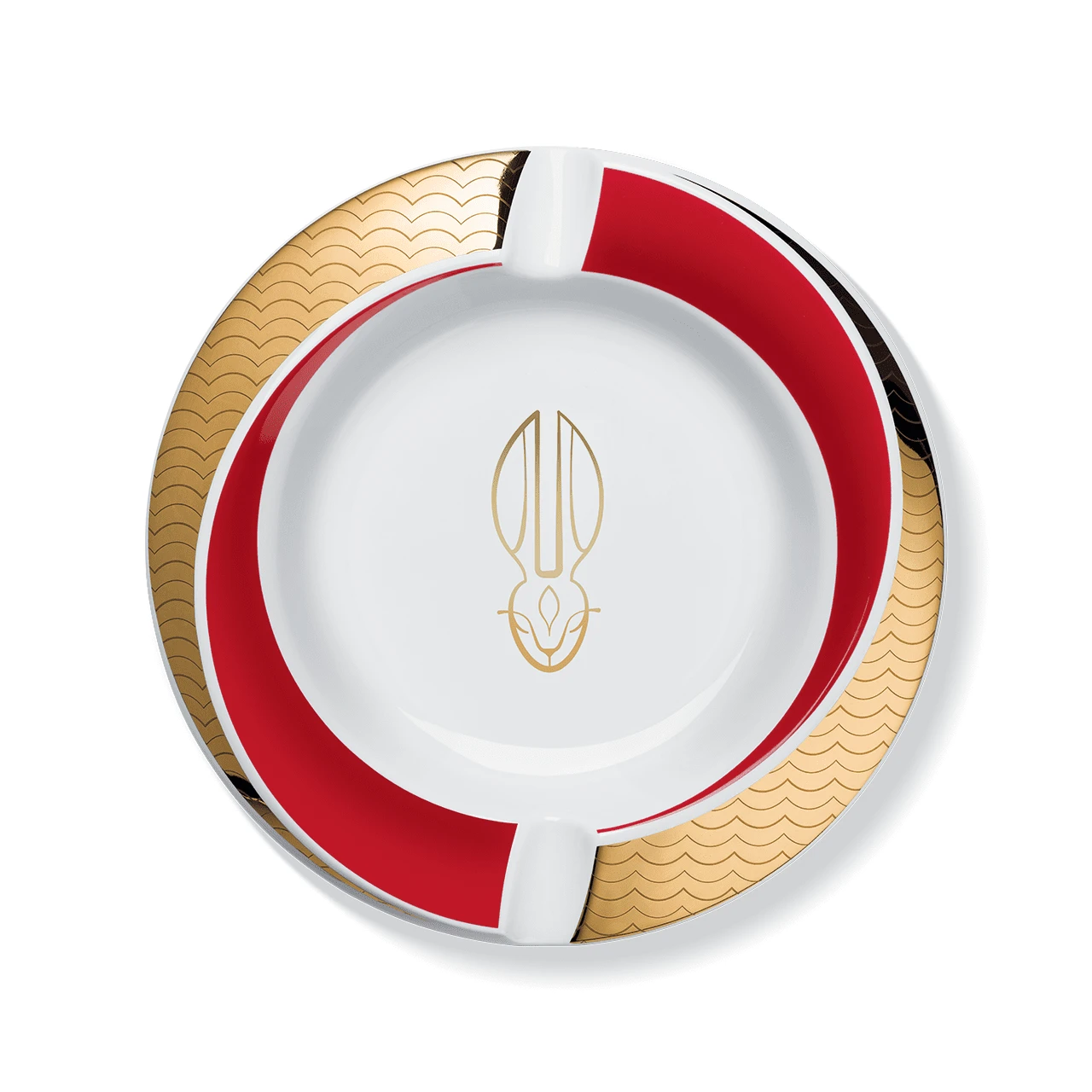 Red and Gold Ceramic Ashtray, depicting a Rabbit icon in the center