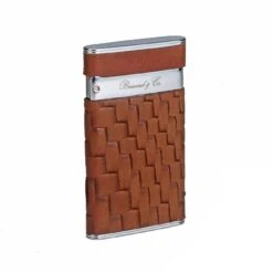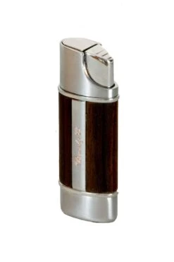 Brizard & Co. Bleached Oak Wood And Blue Leather Two Tone Sottile Single Torch Flame Lighter