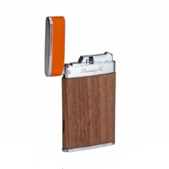 Brizard & Co. Bleached Oak Wood And Blue Leather Two Tone Sottile Single Torch Flame Lighter