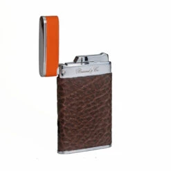 Brizard & Co. Tobacco And Orange Full Grain Leather Two Tone Sottile Single Torch Flame Lighter
