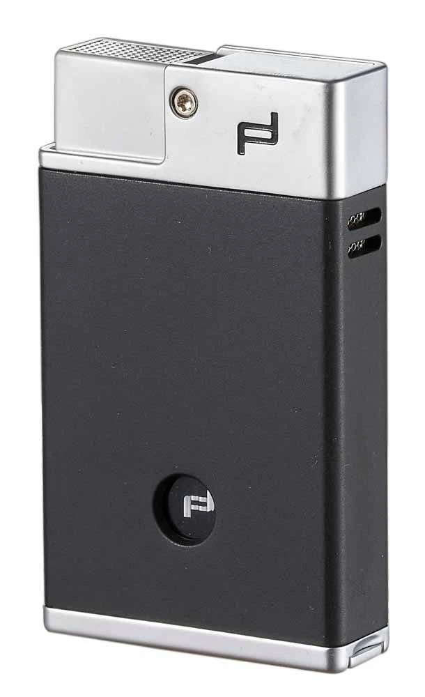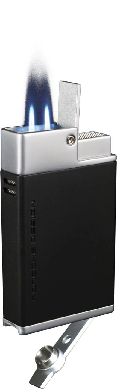 The Baden Double Torch Flame Lighter created by Porsche Design is a beautifully designed lighter with a powerful flame. The two wind-resistant jet flames are ignited when the single action trigger is pressed. With a unique Porsche Design logo featured on the fuel viewing window, you’ll always know when it’s time to refill with butane. The solid matte black body is accompanied with a sleek brushed silver color. Located at the bottom is a built-in 8mm cigar punch, along with a flame adjuster and butane refillable port. Purchase this today from eLighters and get it personalized with laser engraving!