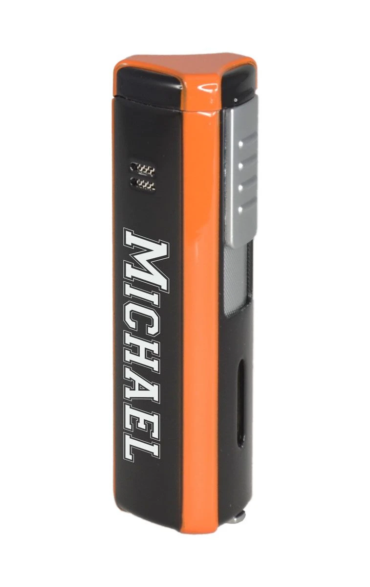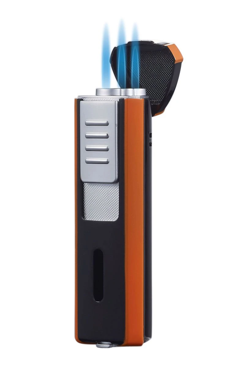Brizard & Co. Gatsby Genuine Caiman Tobacco And Orange Leather Triple Torch Flame Table Lighter