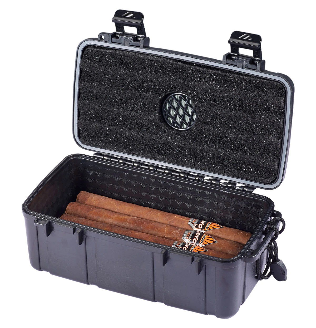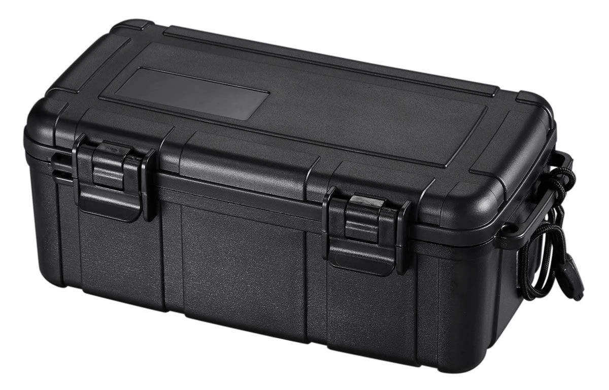 • Hard, Black Plastic; Airtight Snapping Clasps and Turning Lock; Built for Travel