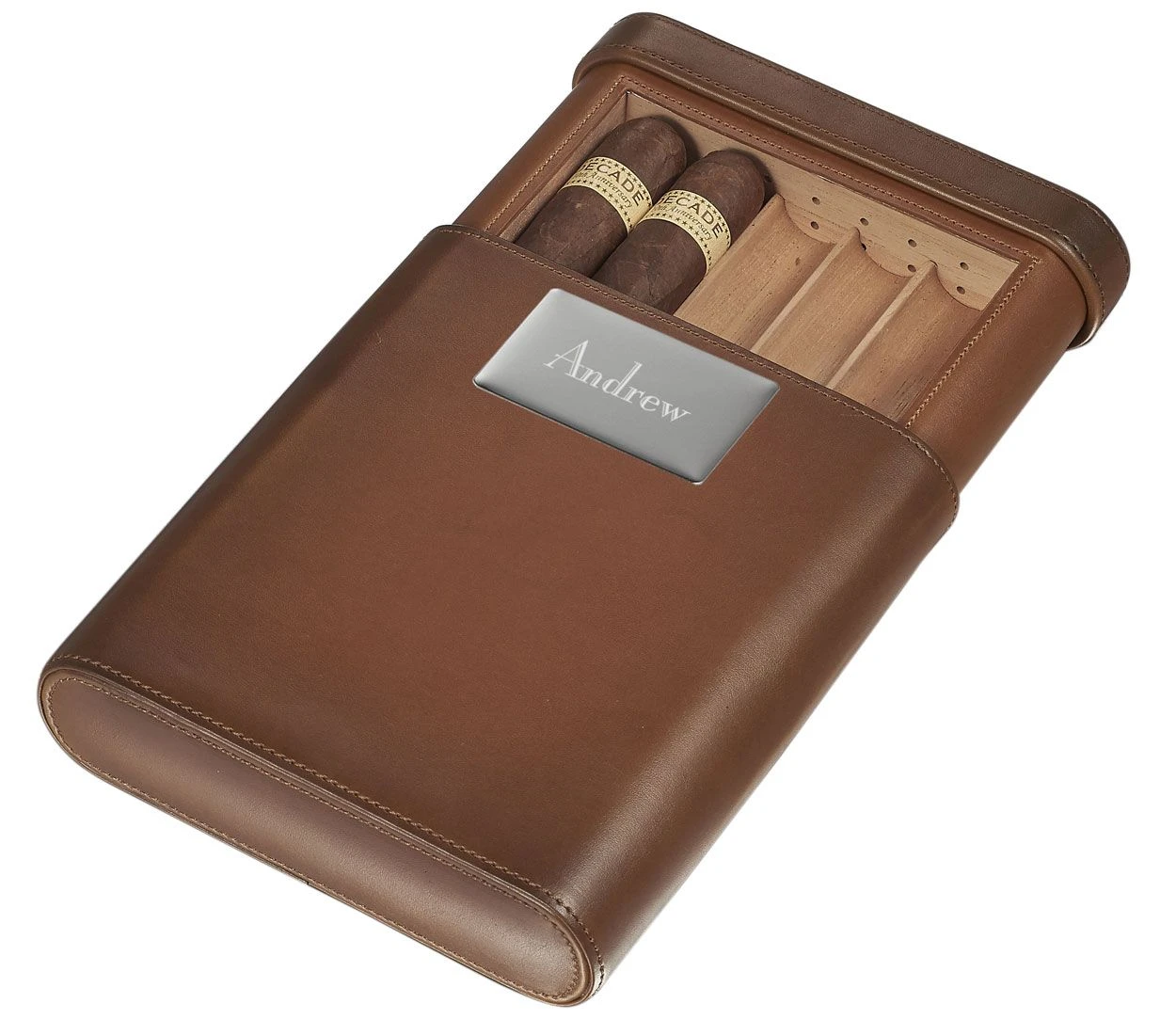 This Luxurious Travel Cigar Case is crafted from fine leather and fragrant cedar wood, perfect for maintaining your favorite cigar’s humidity and protect from any unnecessary wear and tear. The Larsen is designed to hold up to five cigars individually between wooden spacers, keeping them secure and in place for your travels