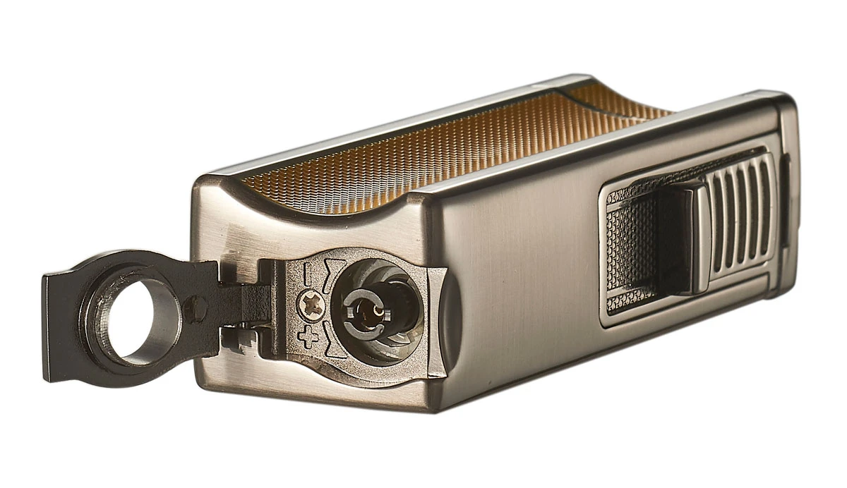 This Visol single jet lighter features a full cigar rest, cigar punch, and butane viewing window. Engraving is available on the back of the lighter.